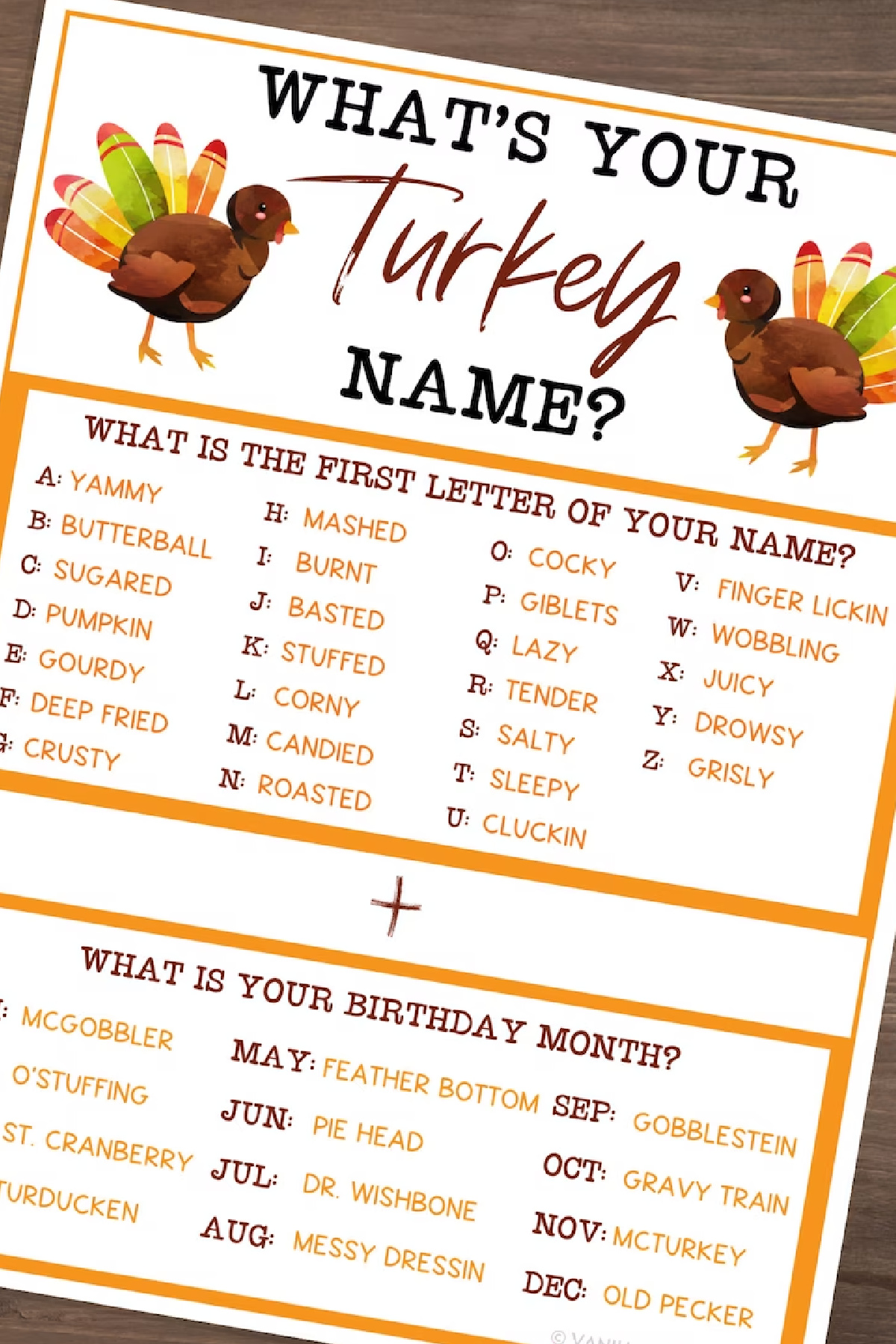 Embrace the festive vibes and make it a day to remember as you refer to each other by these newfound turkey names throughout the celebration