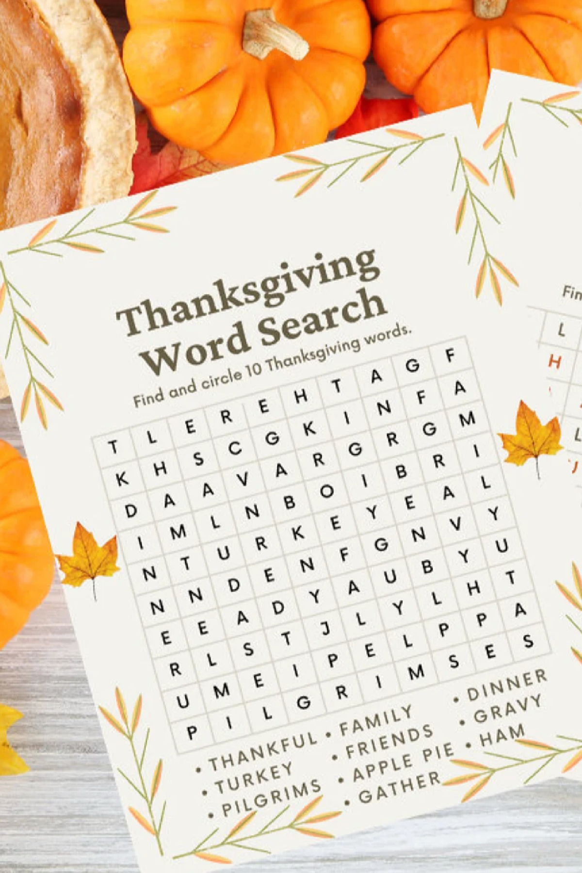 A Thanksgiving-themed word search is a classic activity that’s both fun and educational, keeping guests engaged as they hunt for festive words.