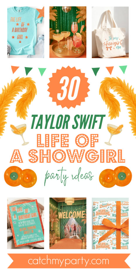 Transform your party space into a glamorous showgirl stage with decorations inspired by Taylor’s new era. From feathers and sparkles to bold orange-and-green accents, each detail brings the theme to life in an eye-catching, totally Instagram-worthy way. These décor ideas help you create a celebration that feels magical, immersive, and full of dazzling personality.